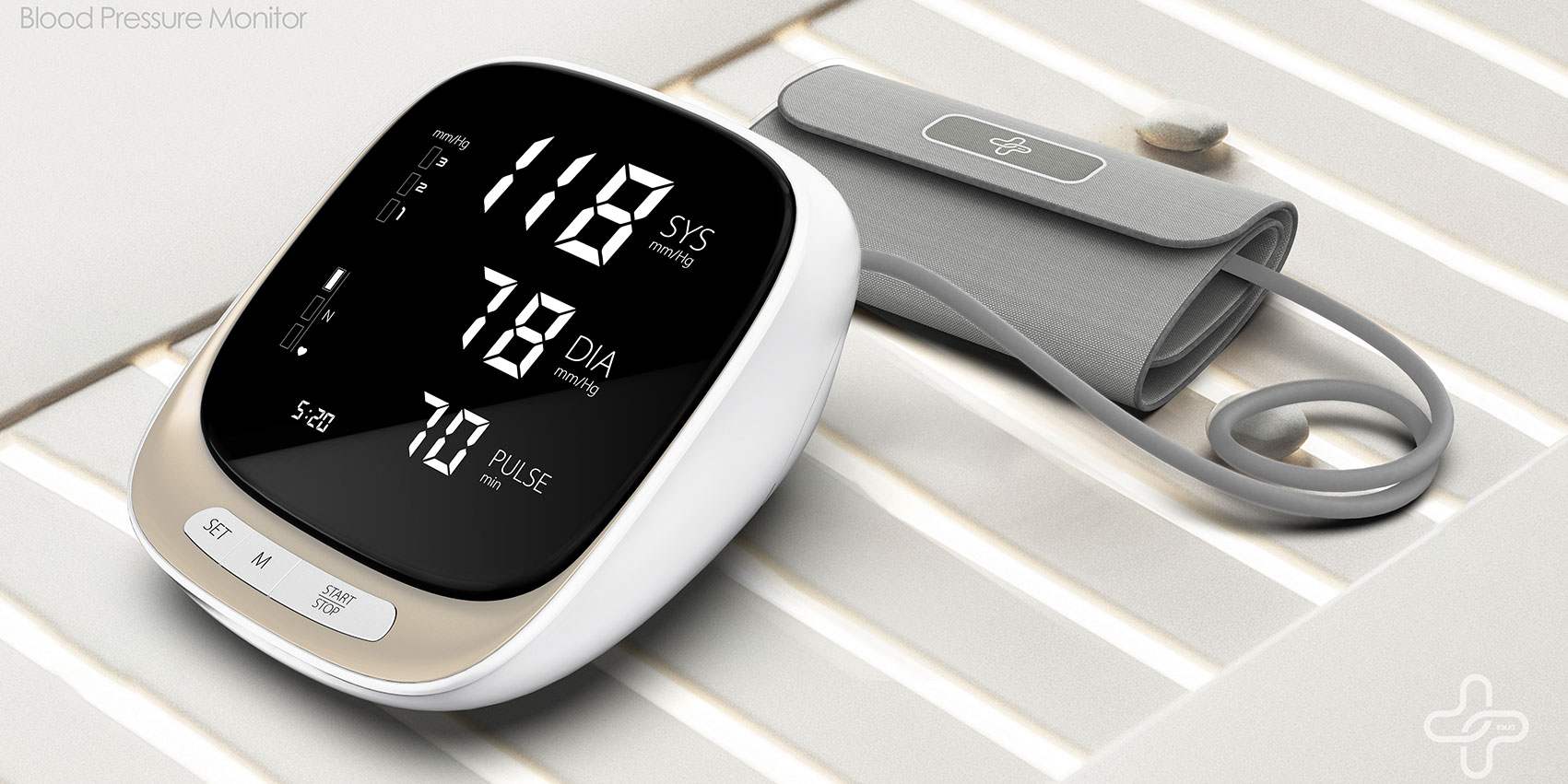 匠品設(shè)計的這款血壓計通過化繁為簡,讓操作更簡單,老年人也可以輕松使用。用圓潤的曲線賦予產(chǎn)品親和力,暖色調(diào)的按鍵區(qū)增加了產(chǎn)品的溫度,增強整體的外觀辨識度。考慮老年人的視力問題,我們采用高清大屏液晶顯示屏,讓用戶的注意力更容易集中在屏幕上,方便讀取數(shù)據(jù),看清測量結(jié)果。環(huán)繞筒狀袖帶與手臂巧妙貼合,佩戴舒適。