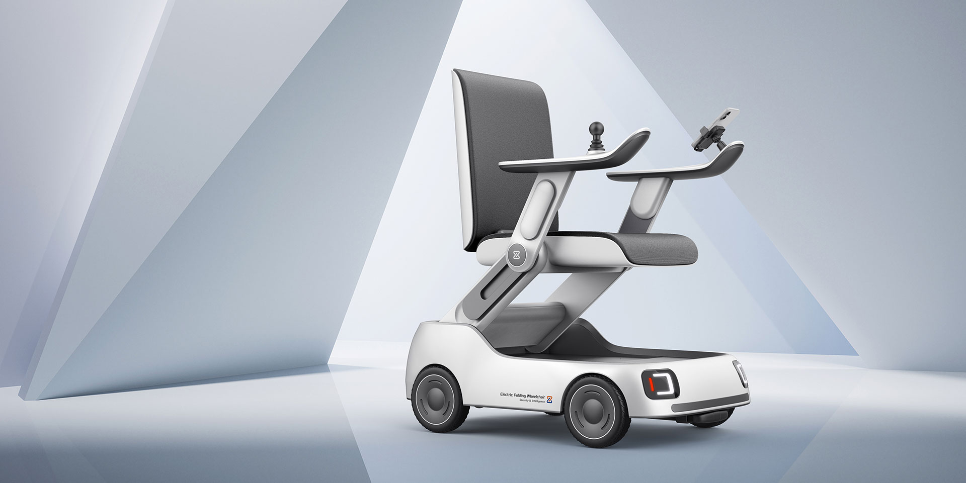輪椅采用可折疊設(shè)計(jì),方便收納。扶手前端的操作界面采用傾斜設(shè)計(jì),符合人體工學(xué),提供更加舒適的操作角度,有助于緩解眼疲勞。指示燈的設(shè)計(jì)來(lái)源于汽車車燈、增強(qiáng)產(chǎn)品的科技感;車身的設(shè)計(jì)圓潤(rùn)時(shí)尚,凸出產(chǎn)品的安全可靠性。